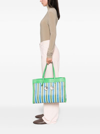 E/W Eyes tote bag Highlights - Light green - Striped pattern - Leather trim - Eye appliques - Top handles - This piece comes complete with a protective dust bag. Imported Composition Outer: Calf Leather 100%, Polyurethane 100% SIZE & FIT Model measurements Height 5 ft 10 in(1.78 m) Bust/Chest 33.46 in(85 cm) Hips 36.22 in(92 cm) Waist 23.22 in(59 cm) Measurement DEPTH 5.11 in(13 cm) HEIGHT 11.81 in(30 cm) WIDTH 15.74 in(40 cm)