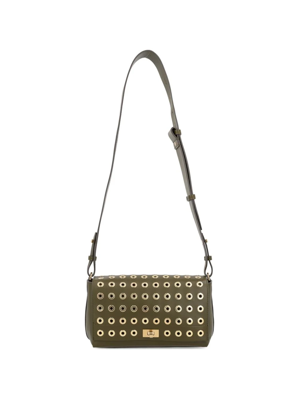 eyelet-detail shoulder bag Highlights - Green - Eyelet detail - Adjustable strap - Gold-tone hardware - Clasp fastening - Rectangular body Made in Italy Composition Outer: Calf Leather 100%