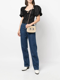 eyes-appliqué woven crossbody bag from ANYA HINDMARCH featuring beige, brown, white, raffia, leather, woven raffia design, appliqué detail, tassel detail, adjustable shoulder strap, top zip fastening, main compartment and internal logo patch. Size & Fit Model Measurements: Bust: 85cm Height: 177cm Hips: 89cm Waist: 60cm DEPTH: 6cm HEIGHT: 14cm STRAP: 56cm WIDTH: 19cm Fabric and Care Designer Style ID: 168342 Designer Colour: NATURAL Composition: Outer: Raffia 100%, Eco leather 100% Made inMadagascar