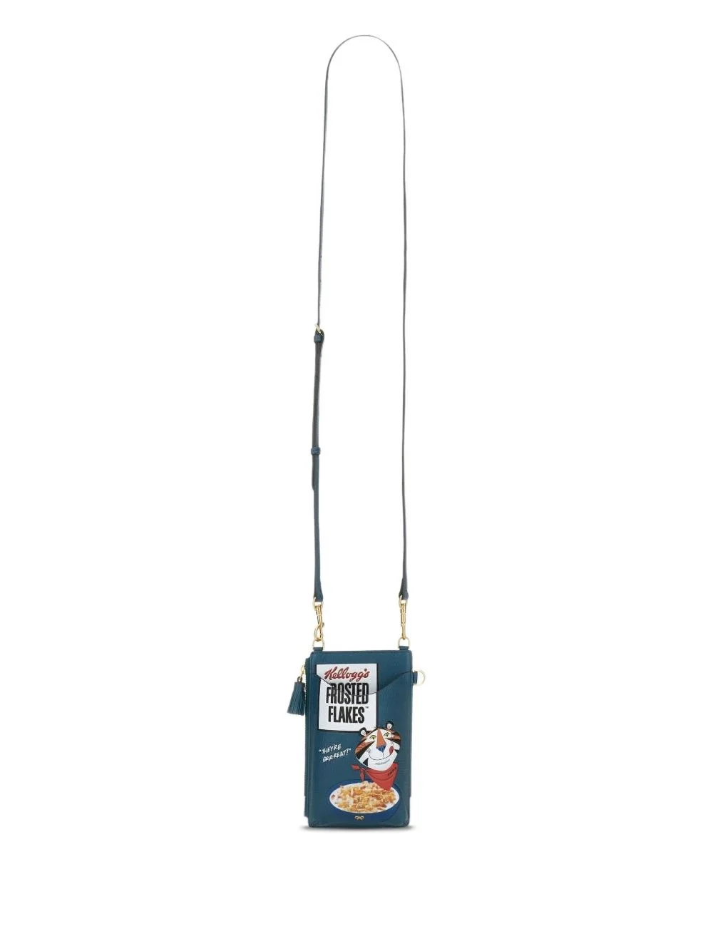 graphic-print pocket phone bag Highlights - Blue - Leather construction - Adjustable strap - Front pocket - Frosted flakes print - Tassel detail Imported Composition Outer: Goat Skin 100% SIZE & FIT Measurement DEPTH 1.18 in(3 cm) HEIGHT 6.29 in(16 cm) WIDTH 3.93 in(10 cm)