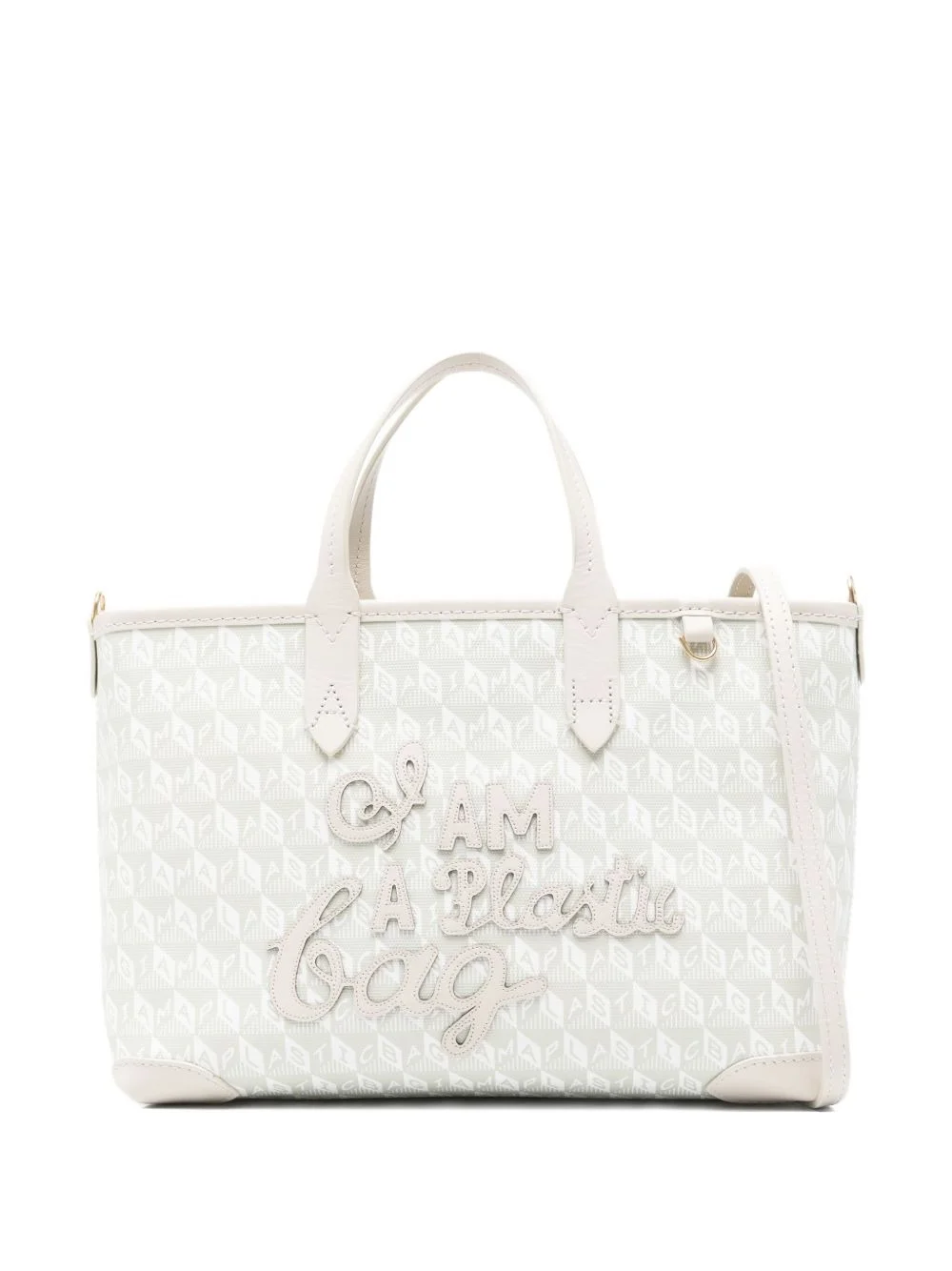 I Am A Plastic Bag XS tote bag Highlights - Off-white - Geometric pattern - Top handles - Detachable strap - Zip fastening Made in Italy Composition Outer: Canvas 100% SIZE & FIT Model measurements Height 5 ft 11 in(1.8 m) Bust/Chest 31.49 in(80 cm) Hips 36.61 in(93 cm) Waist 24.4 in(62 cm) Measurement DEPTH 3.93 in(10 cm) HANDLE 3.14 in(8 cm) HEIGHT 6.29 in(16 cm) WIDTH 9.84 in(25 cm)