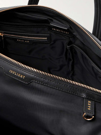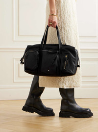 EDITORS'NOTES Pack a weekend's worth of essentials into Anya Hindmarch's 'In-flight' in an orderly, organized fashion. Crafted from regenerated ECONYL® and trimmed with leather, it has labelled pockets for storing anything from earphones to a water bottle. Generously sized, it will accommodate a small laptop and travel accessories including cosmetics and toiletries – everything you could want in a bag. SIZE & FIT This item’s measurements are: - Handle Drop: 14cm / 5.5in - Depth: 18cm / 7.1in - Height: 28cm / 11in - Width: 42cm / 16.5in DETAILS & CARE - Black ECONYL® and leather (Calf) - Two top handles, detachable adjustable shoulder strap - Four external zipped pockets, one slip pocket, three internal slip pockets, one zipped pocket, internal laptop sleeve, detached zipped pouch - Two-way zip fastening along top - Comes with a dust bag - Weighs approximately 2.9lbs/ 1.3kg