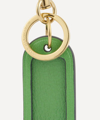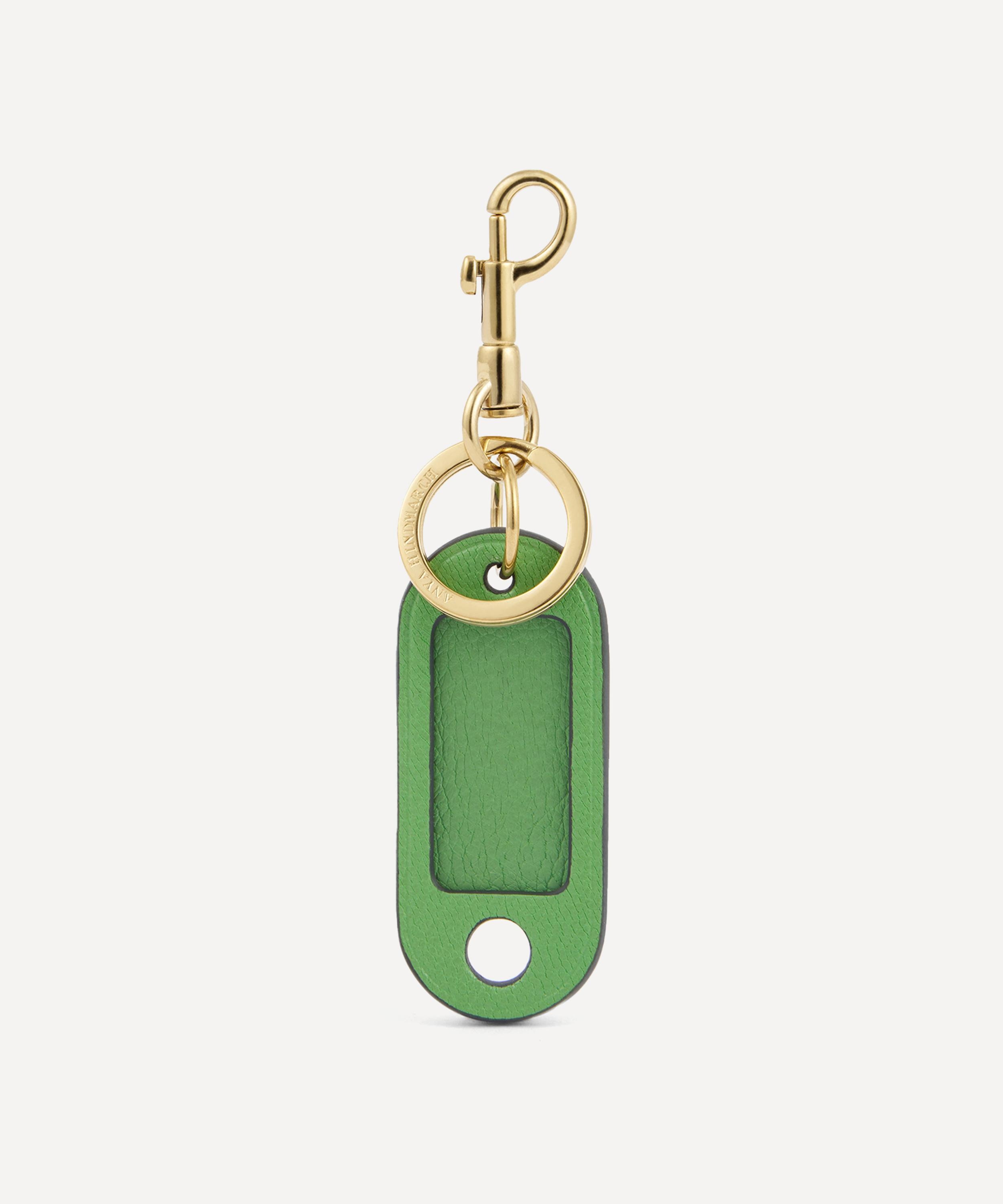 DETAILS Leather luggage tag Plastic pane for personalisation Gold-tone keyring and lobster clasp Grass Green colourway AH branding to the keyring COMPOSITION & SIZE Leather D: 0.5cm, W: 6cm, H: 14cm