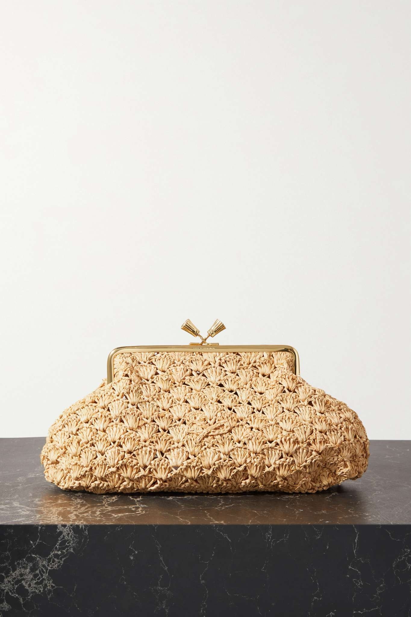EDITORS'NOTES Whether you’re off to dine al fresco or attending a beach wedding, Anya Hindmarch’s ‘Maud’ clutch is the perfect accessory to complete your look. Woven from beige raffia to create a floral pattern, its shaped into a beautiful, elongated silhouette and is topped with a gold-tone metal clasp. Carry yours wearing an airy midi dress for a look of pure elegance. SIZE & FIT This item’s measurements are: - Min. Strap Length: 82cm / 32.3in - Depth: 11cm / 4.3in - Max. Strap Length: 82cm / 32.3in - Height: 18cm / 7.1in - Width: 34cm / 13.4in DETAILS & CARE - Neutral raffia - Clap-fastening top