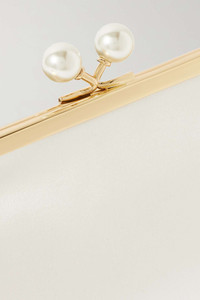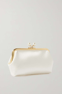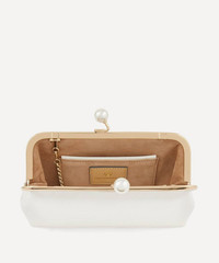 EDITORS'NOTES Part of Anya Hindmarch's 'Maud' collection, this clutch bag exudes vintage femininity. It’s made from ivory recycled satin framed with gold-tone metal and topped with a lustrous faux-pearl clasp. The suede interior is spacious enough to hold your evening essentials. Use the detachable strap to wear it on the shoulder or crossbody. SIZE & FIT This item’s measurements are: - Depth: 4cm / 1.6in - Max. Strap Length: 122cm / 48in - Height: 12cm / 4.7in - Width: 20cm / 7.9in DETAILS & CARE - Ivory recycled satin - Clasp fastening - Comes with dust bag