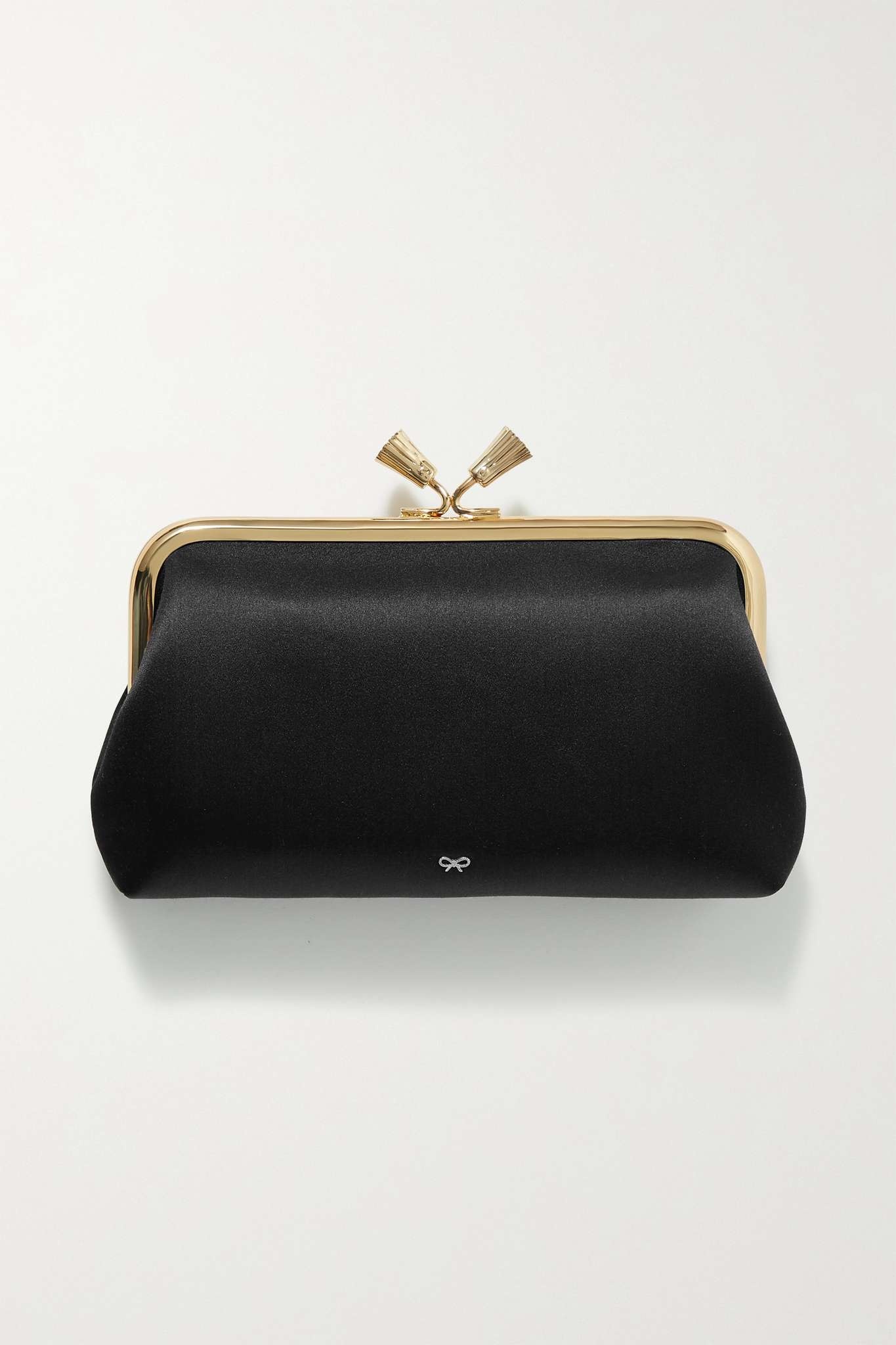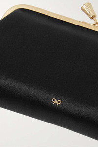 EDITORS'NOTES There's a ladylike elegance to Anya Hindmarch's 'Maud' clutch - Princess Diana often carried one to evening events. It's made from smooth satin blended with certified viscose, lined in suede and topped with a gilded tassel-shaped clasp. Keep your cards, phone and lipstick safely stowed inside. This product was created using Considered Materials. Find out more about NET SUSTAIN here. SIZE & FIT This item’s measurements are: - Handle Drop: 57cm / 22.4in - Depth: 3cm / 1.2in - Height: 11.5cm / 4.5in - Width: 22cm / 8.7in DETAILS & CARE - Black satin - Clasp fastening - Comes with dust bag