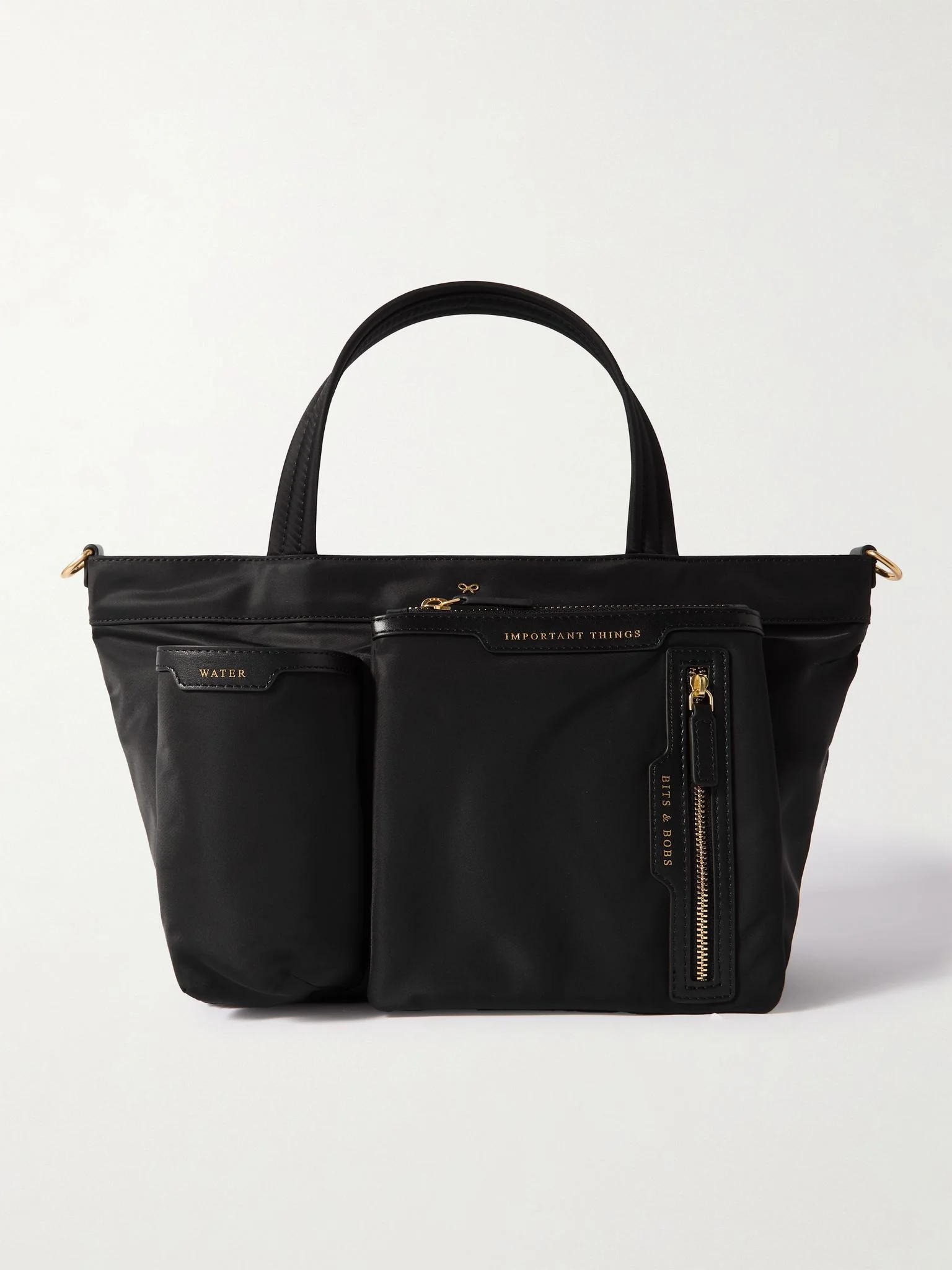 Anya Hindmarch's tote is thoughtfully organized with labeled pockets and compartments to help you keep all your belongings in check. It's made from hardwearing ECONYL®, trimmed with smooth leather and has a detachable shoulder strap so you can wear it two ways. Inside, you'll fit the essentials, as well as your sunglasses and a book, and there's a special section on the outside for a water bottle. Details & Care - Black leather and ECONYL® - Two top handles, detachable adjustable shoulder strap - External slip pocket and zipped pockets - Internal slip pockets - Fully lined - Zip fastening along top - Comes with a dust bag