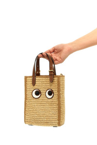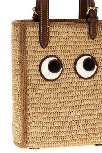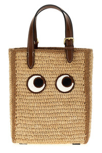 cod. 5050925189057NATURAL 'Mini Eyes N/S' straw shopping bag with leather details, double handle, adjustable and removable shoulder strap, front embroidery. Color: Beige Size & Fit: W 16 x H 21 x D 6 cm Composition: 100% raffia Made in: Madagascar