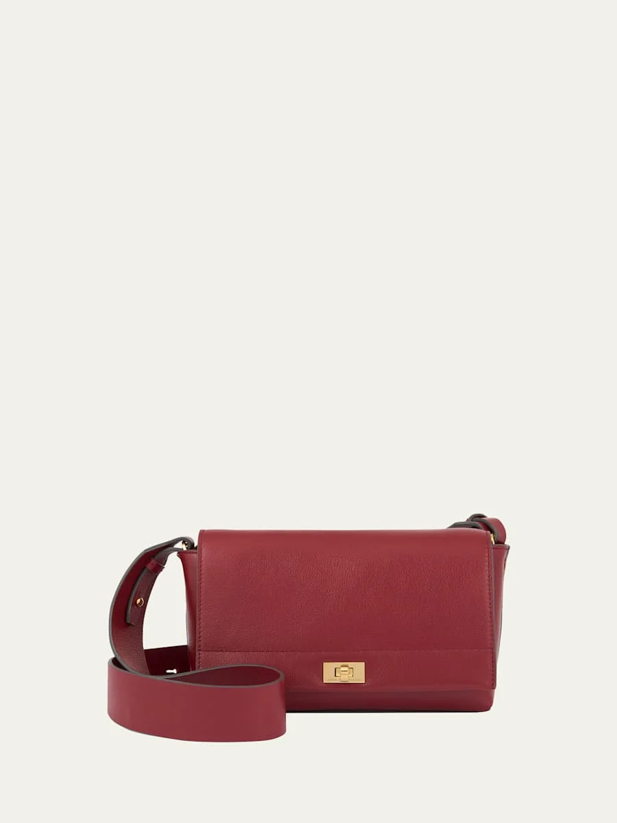 Anya Hindmarch "Mortimer" crossbody bag in shiny calfskin leather Adjustable crossbody strap Flap top with turn-lock closure Interior, one card slot Golden hardware Approx. 4.7"H x 8.7"W x 3.5"D Item Weight (Lbs.): 0.1 Made in Italy Proposition 65 warning for California residents Online Inquiries: BGS21_V6E48| Store Inquiries: #4931881