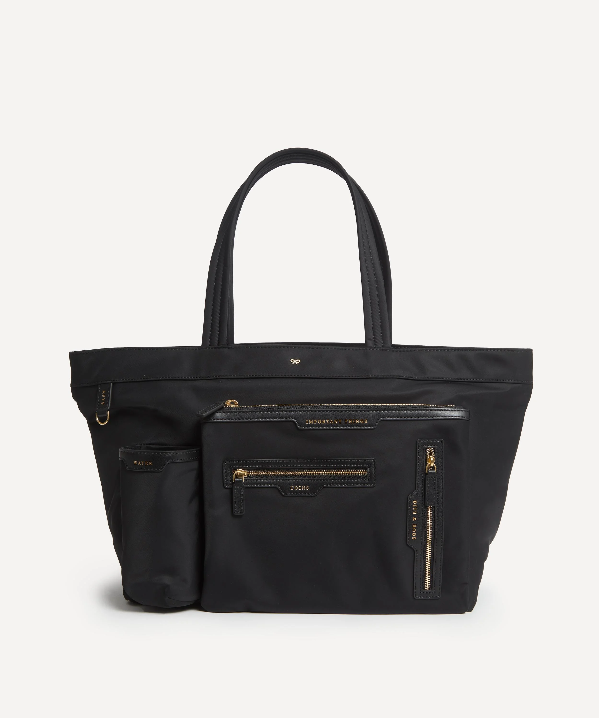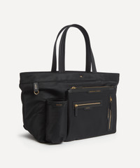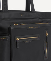 DETAILS Tote bag Regenerated ECONYL® nylon Leather trims Two top handles Gold-tone hardware Zip closure with leather tassel zip pull Embossed labels Multiple zipped pockets to front Internal pockets Water bottle compartment to front Attached D-ring COMPOSITION & SIZE Regenerated ECONYL® Nylon Trims: Calf Leather H: 27cm, W: 46cm, D: 19cm