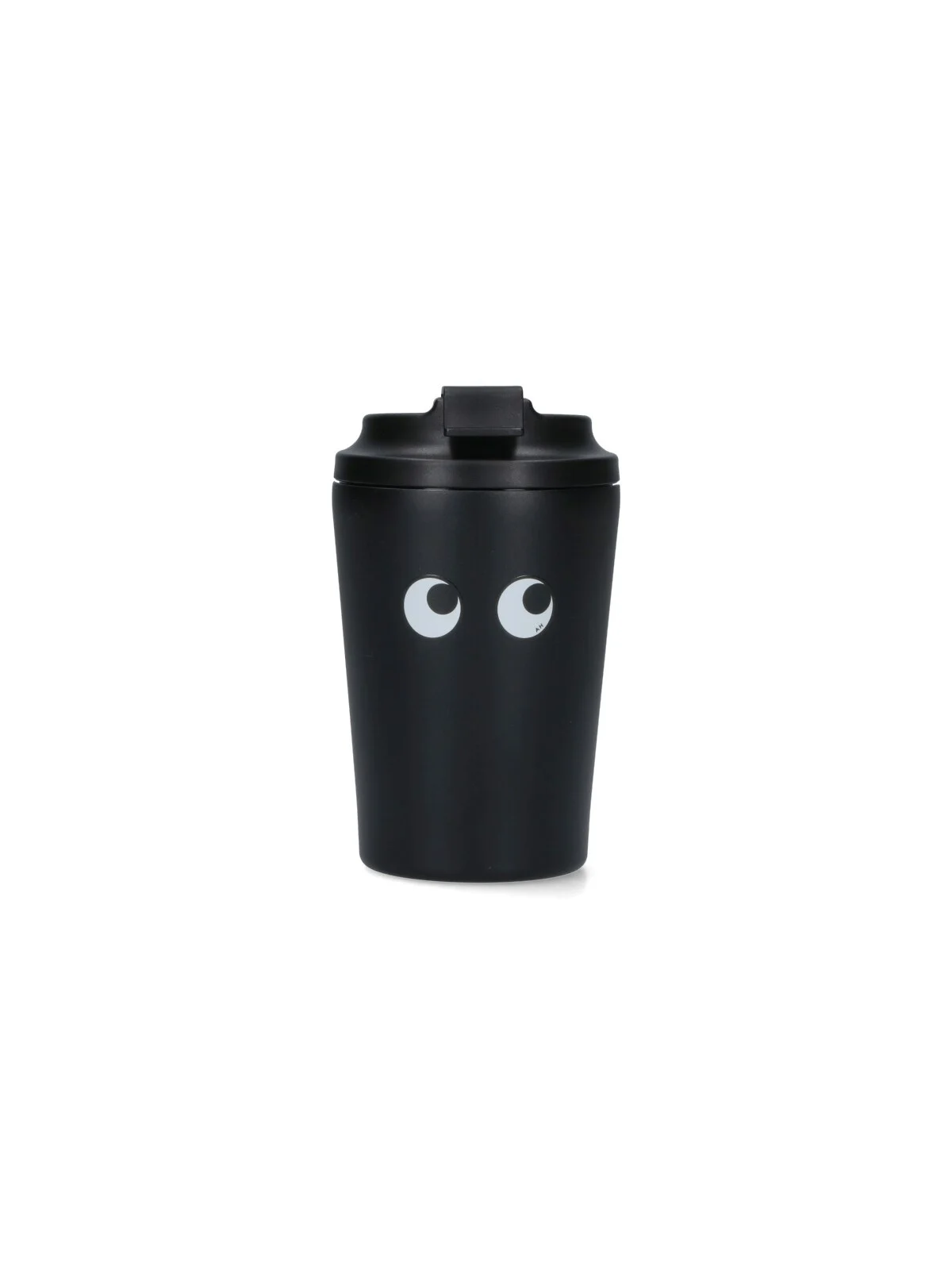 ANYA HINDMARCH REUSABLE CUP IN BLACK POLYPROPYLENE, CONTRASTING "EYES" DETAIL ON THE FRONT, TOP CLOSURE. PRODUCT INFO PRODUCT CODE 206235BLACK COMPOSITION: 100% POLYPROPYLENE MADE IN: UNITED KINGDOM - CAPACITY: 350 ML