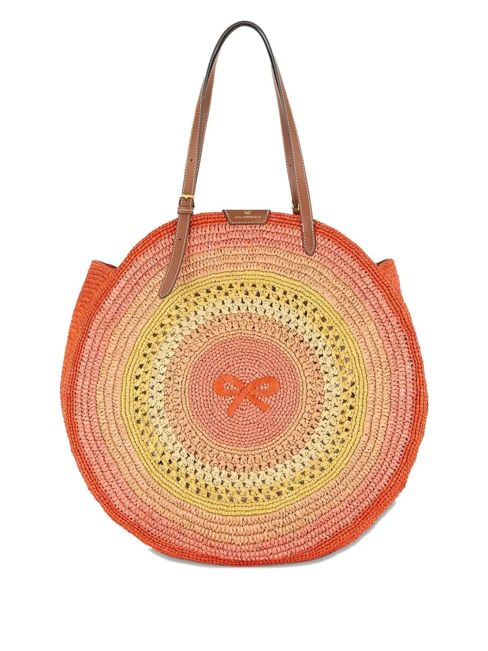 round bow tote bag Highlights - Orange - Round shape - Ombre effect - Crochet detailing - Leather handles - Bow emblem Imported Composition Outer: Raffia 100%, Calf Leather 100% SIZE & FIT Measurement DEPTH 4.72 in(12 cm) HEIGHT 18.11 in(46 cm) WIDTH 17.71 in(45 cm)