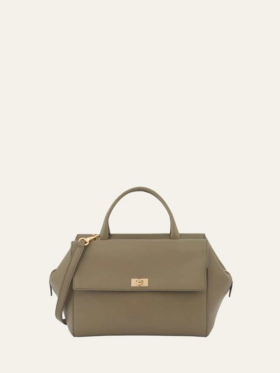 Anya Hindmarch "Seaton" satchel bag in leather Top handle Detachable, adjustable crossbody strap Can be worn as a top handle or crossbody bag Zip top closure Exterior, one zip pocket and one turn-lock flap pocket Approx. 14.6"H x 15"W x 5.9"D Made in Italy Online Inquiries: BGS21_V6300| Store Inquiries: #4670617