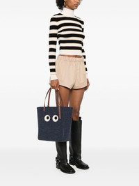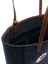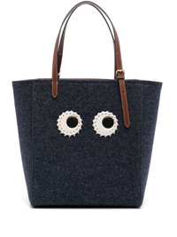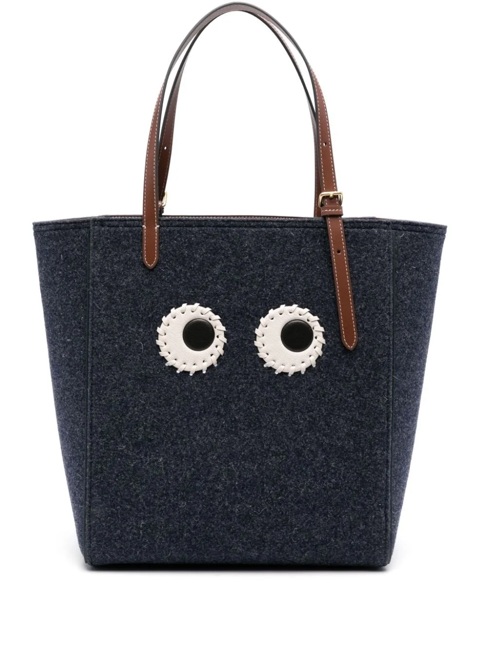 Small Eyes tote bag Highlights - Navy blue - Wool felt - Artificial leather trim - Two adjustable top handles - Small eyes patch to the front - Logo patch to the rear - Main compartment - Internal slip pocket - Internal logo patch - No fastening Made in Italy Composition Outer: Wool Felt 100%, Artificial Leather 100% SIZE & FIT Model measurements Height 5 ft 11 in(1.8 m) Bust/Chest 31.49 in(80 cm) Hips 35.82 in(91 cm) Waist 24.8 in(63 cm) Measurement DEPTH 5.11 in(13 cm) LENGTH 12.59 in(32 cm) WIDTH 15.74 in(40 cm)