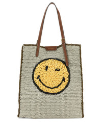 smiley-motif woven tote bag Highlights - Beige - Smiley face design - Braided detailing - Dual shoulder straps - Open top design - Logo plaque Made in Italy Composition Outer: Raffia 100% SIZE & FIT Measurement DEPTH 6.29 in(16 cm) HEIGHT 14.96 in(38 cm) WIDTH 12.99 in(33 cm)