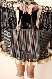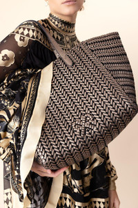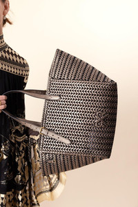 DETAILS AND INSIGHT Anya Hindmarch the neeson square tote in smog. 100% Goatskin - Capra Hircus Linnaeus 23x56x27" Fits Iphone 15 Pro Max Made in China Style 5050925193054-SMOG
