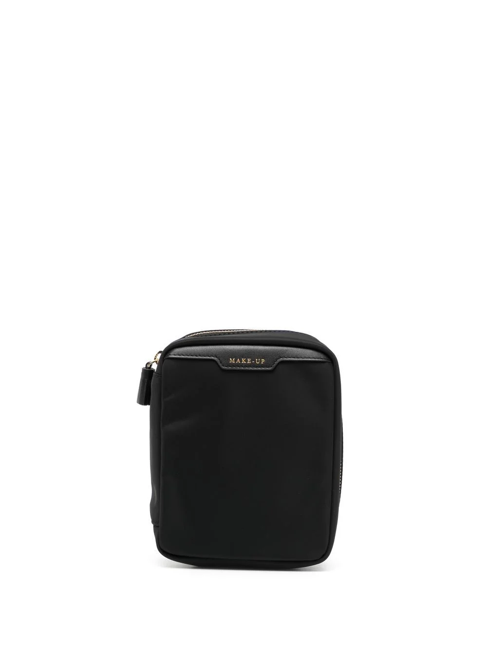 zip-up make-up bag black top zip fastening gold-tone hardware gold-tone logo lettering logo-print lining main compartment Imported Composition Body: Nylon 100% SIZE & FIT Measurement DEPTH 2.75 in(7 cm) HEIGHT 5.9 in(15 cm) WIDTH 7.08 in(18 cm)