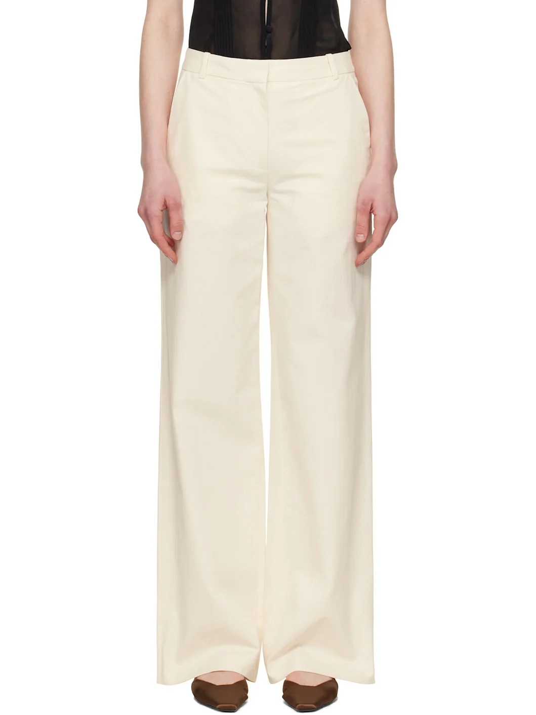 Straight-leg and loose-fit textured plain-woven cotton trousers. · High-rise · Belt loops · Four-pocket styling · Zip fly Supplier color: Ecru 100% cotton. Made in Bulgaria 251252F087008