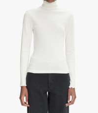 - Soft lightweight material. - Fitted cut. - High collar with a wavy edge. - Small openwork details all over. - Wavy sleeve ends. - 100% organic cotton. Size Advice - Grace is 5'10 tall and is wearing size S. Composition & Material - 100% cotton. - Portuguese material. - Made in Portugal. - Machine wash cold (86°F) inside-out.