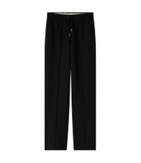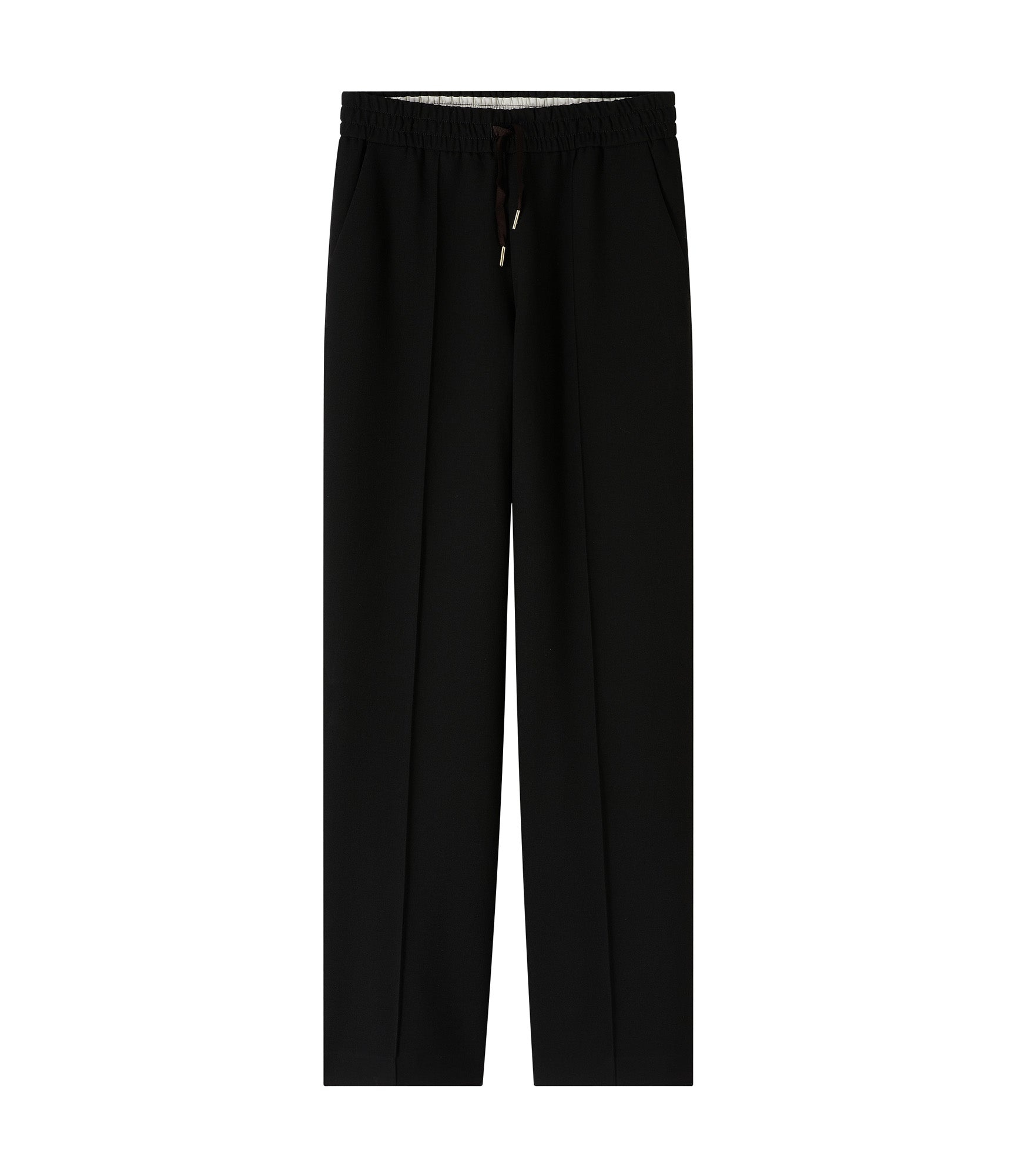 PRODUCT DETAILS - Soft, heavyweight material. - Straight cut. - Straight, wide leg. - Elasticated waist with a tone-on-tone drawstring. - Pleat down the front and back of the leg. - Two side pockets. - 61% recycled polyester and 26% ECOVERO viscose: durable and breathable viscose from certified sustainable forests. - Wear with the Emy jacket. FABRIC & CARE - 61% polyester. 26% viscose. 7% cotton. 6% elastane. - Made in Tunisia. - Dry clean. SIZE - Sculy is 5'10" tall and is wearing size 36.