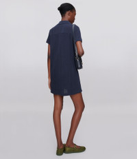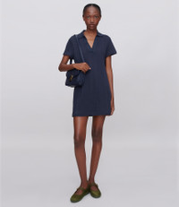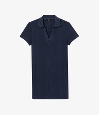 - Heavyweight material with subtle openwork. - Straight cut. - Mid-thigh length. - V-neck polo shirt collar. - Short sleeves. - This garment is GOTS-certified which guarantees the organic origin of this clothing and the compliance with strict social and environmental criteria throughout the production chain. - GOTS-certified product (No. 214416/EGL) - Organic textile. - Same fabric also available in: Ophelia polo shirt Size Advice - Grace is 5'10 tall and is wearing size S. - This item sizes normally. We recommend that you select your usual size. Composition & Material - 100% cotton. - Portuguese material. - Made in Portugal. - Machine wash cold (86°F) inside-out.