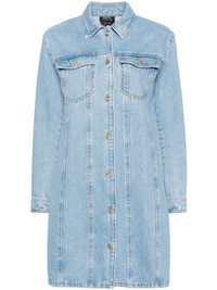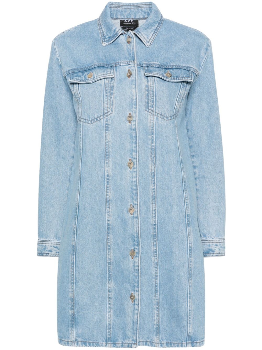 Alpine denim minidress A.P.C. demonstrates its affinity for classic separates with this minidress. Itâs crafted from blue denim to a button-up silhouette and is complete with seam detailing. Highlights - Blue - Cotton - Denim - Seam detailing - Internal logo tag - Classic collar - Front button fastening - Long sleeves - Buttoned cuffs - Chest flap pockets - Thigh-length - Straight hem Imported Composition Cotton 100% SIZE & FIT Model measurements Height 5 ft 10 in(1.78 m) Bust/Chest 32.3 in(82 cm) Hips 35.4 in(90 cm) Waist 24.8 in(63 cm) FittingInformation Designed to be unstructured, offering a loose fit throughout Sturdy and hard-wearing, this denim piece offers no stretch This piece fits true to size – take your usual size