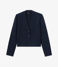 - Cropped cut. - V-neck. - Closes with two shiny faux horn buttons. Size Advice - Matilda is 5'9 tall and is wearing size 36. - This item sizes normally. We recommend that you select your usual size. Composition & Material - 100% wool. - Made in Hong Kong. - Hand wash or delicate cycle.
