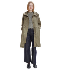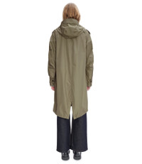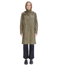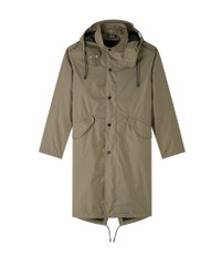 - Unisex model. - Water-repellent material. - Straight slightly loose cut. - Stand-up collar with snap closure. - Side flap pockets. - High collar. Hood with brim adjusts with tone-on-tone drawstrings. - Back slit. Size Advice - Lorena is 5'11 tall and is wearing size XS. - This model fits true to size; choose your usual size. Composition & Material - 60% Polyester. 32% Polycarbonate. 8% Polyurethane. - Italian material. - Made in Romania. - Dry clean. Our commitments Through its RESPECT program A.P.C reduces (by implementing many practical measures to improve its environmental footprint) regulates (by respecting and enforcing its ethical responsibility on the part of its employees as well as its suppliers) and reuses (through its recycling vintage or quilts and butler programs for example).