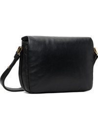 Padded buffed leather shoulder bag. · Adjustable crossbody strap · Logo stamp at face · Magnetic press-stud flap · Patch pocket at interior · Cotton canvas lining · H7" x W9" x D3.5" Supplier color: Noir Leather. Made in Morocco 261252F048014