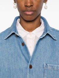 light blue front button fastening buttoned cuffs chest patch pocket box-pleat detail Size & Fit Model Measurements: Height: 1.77 m Bust/Chest: 76.0 cm Hips: 85.0 cm Waist: 60.0 cm Model wears size 36 Fabric and Care Designer Style ID: COHEQF02895 Designer Colour: IAL INDIGO Composition: Organic cotton 100% Washing instructions: Machine Wash Made in Portugal