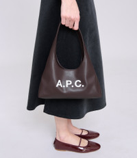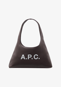 - Recycled leather-like material. - Magnetic inside closure. - Two handles to carry the bag on the shoulder or by hand. - One inside pocket. - White A.P.C. logo on the front. - In the Ninon product line. Size Advice - Dimensions: 26.5 x 13 x 4.5 cm. Composition & Material - 55% polyurethane. 40% polyester. 5% calcium carbonate. - Made in China. - Care instructions: wipe with a soft dry cloth.
