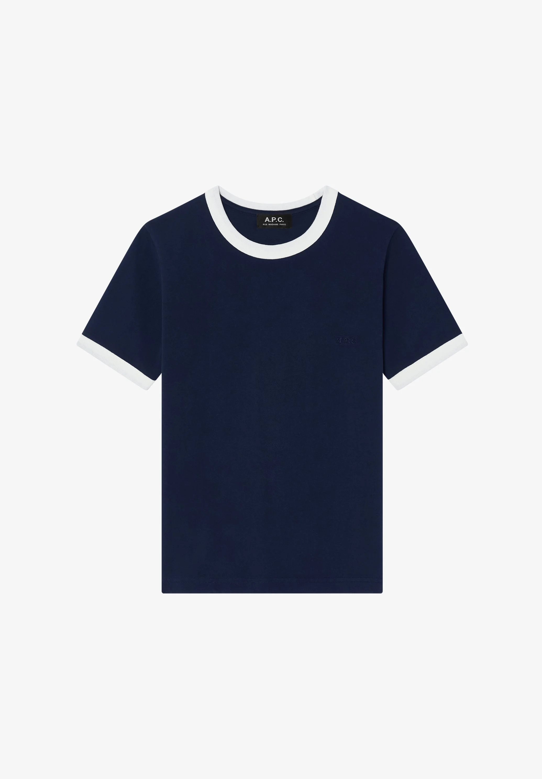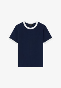 - Straight short cut. - Crew neck. - A.P.C. embroidery over the heart. - Contrasting collar and sleeve ends. - 100% organic cotton. Size Advice - Simone is 5'10 tall and is wearing size S. Composition & Material - 100% cotton. - Portuguese material. - Made in Portugal. - Machine wash cold (86°F) inside-out.