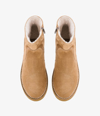 A.P.C. Women's shoes. - Ankle boots in suede split. - Ankle high. - Tone-on-tone topstitching. - Faux fur interior. - Crepe sole. - Insole reinforced at heel. Size Advice - Sizes 35 to 41. - Heel: 2.3 inches. Composition & Material - 100% leather. - Italian material. - Made in Portugal. - Clean with an adapted brush and protect with a waterproof spray.