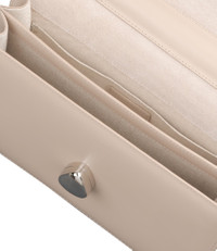 A.P.C. Women's bag. - Handbag with 80s-style jewel clasp. - Supple cowhide leather. - Adjustable leather strap to wear the bag on the shoulder or across the chest. - Magnetic silvertone hardware clasp. - Flap lined with cowhide suede split leather. - Two compartments and an interior pocket. - Embossed 'A.P.C.' logo on the clasp. - Also available in a smaller version: the Astra Small bag. Size Advice - Dimensions: 9.8 x 7.1 x 3.1. Composition & Material - 100% lambskin. - Spanish material. - Made in Morocco. - Care instructions: wipe with a soft dry cloth.