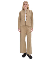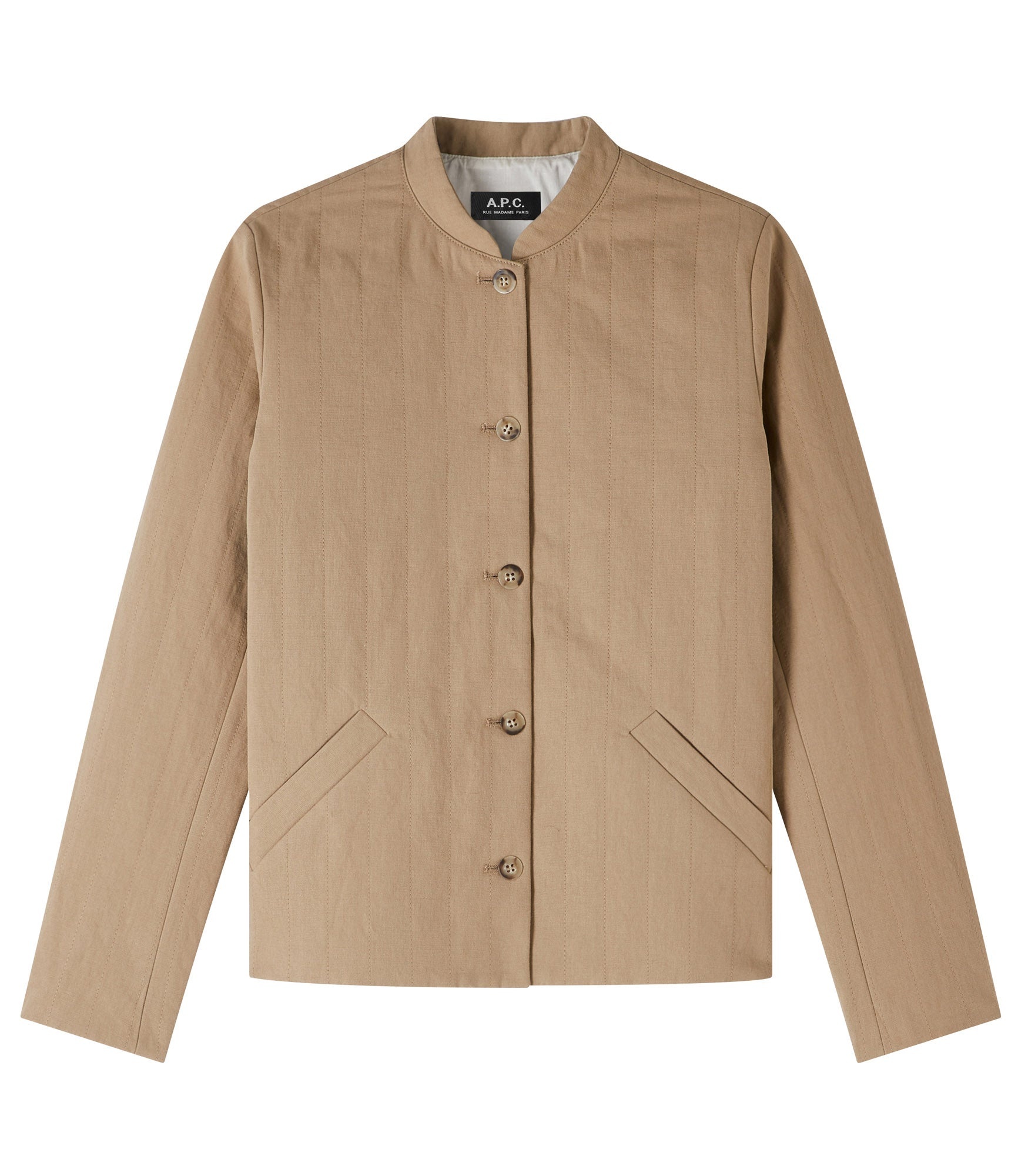 - Crisp material with slightly textured feel. - Straight cut. - Mandarin collar. - Buttons in faux horn. - Cotton lining. - May be worn with Tressie pants. Size Advice - Tinka is 5'9 tall and is wearing size 36. Composition & Material - 76% Cotton. 24% Linen. - Italian material. - Made in Romania. - Dry clean. Our commitments Through its RESPECT program A.P.C reduces (by implementing many practical measures to improve its environmental footprint) regulates (by respecting and enforcing its ethical responsibility on the part of its employees as well as its suppliers) and reuses (through its recycling vintage or quilts and butler programs for example).