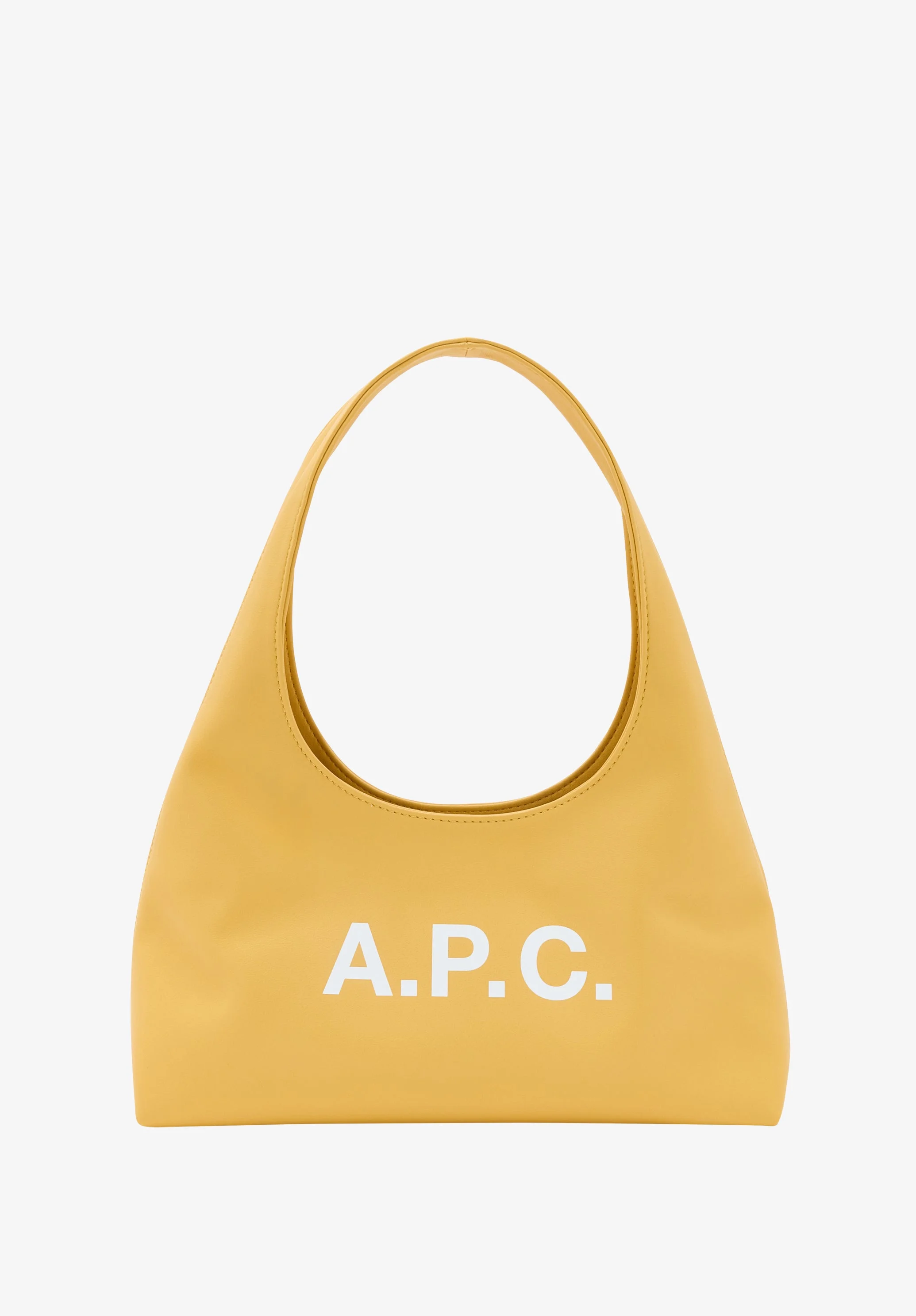 - Recycled leather-like material. - Magnetic inside closure. - Two handles to carry the bag on the shoulder or by hand. - One inside pocket. - White A.P.C. logo on the front. - In the Ninon product line. Size Advice - Dimensions: 26.5 x 13 x 4.5 cm. Composition & Material - 55% polyurethane. 40% polyester. 5% calcium carbonate. - Made in China. - Care instructions: wipe with a soft dry cloth.
