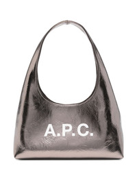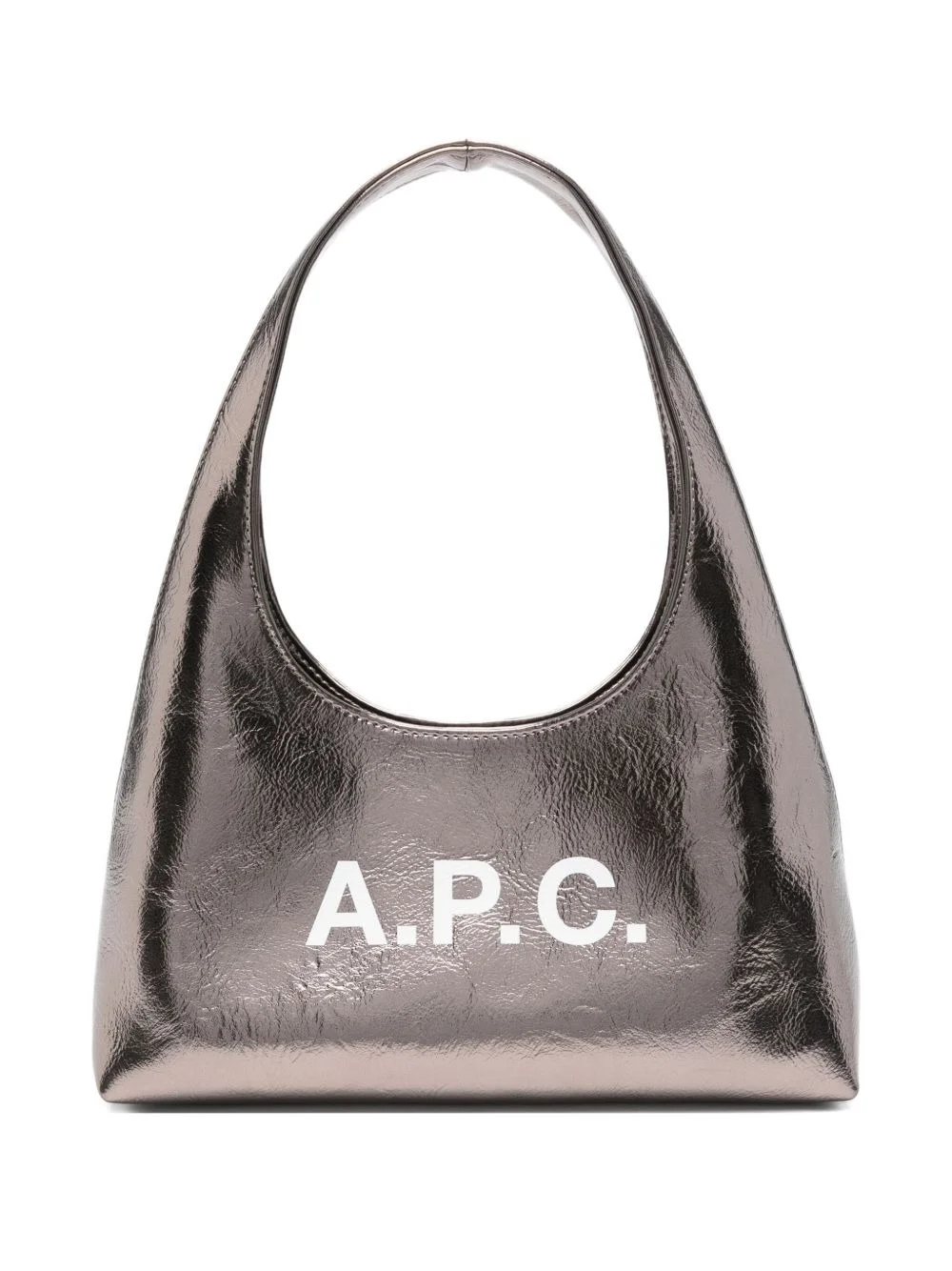small metallic logo shoulder bag Highlights - Silver - Top handle - Logo lettering - Curved silhouette Imported Composition Lining: Cotton 100% Outer: Polyurethane 48%, Polyester 40%, Wood 8%, Polycarbonite 4% SIZE & FIT Model measurements Height 5 ft 11 in(1.8 m) Bust/Chest 32.67 in(83 cm) Hips 36.22 in(92 cm) Waist 24.4 in(62 cm) Measurement DEPTH 3.93 in(10 cm) HANDLE 6.69 in(17 cm) HEIGHT 5.9 in(15 cm) WIDTH 9.84 in(25 cm) Washing instructions Do Not Wash/Do Not Dry Clean