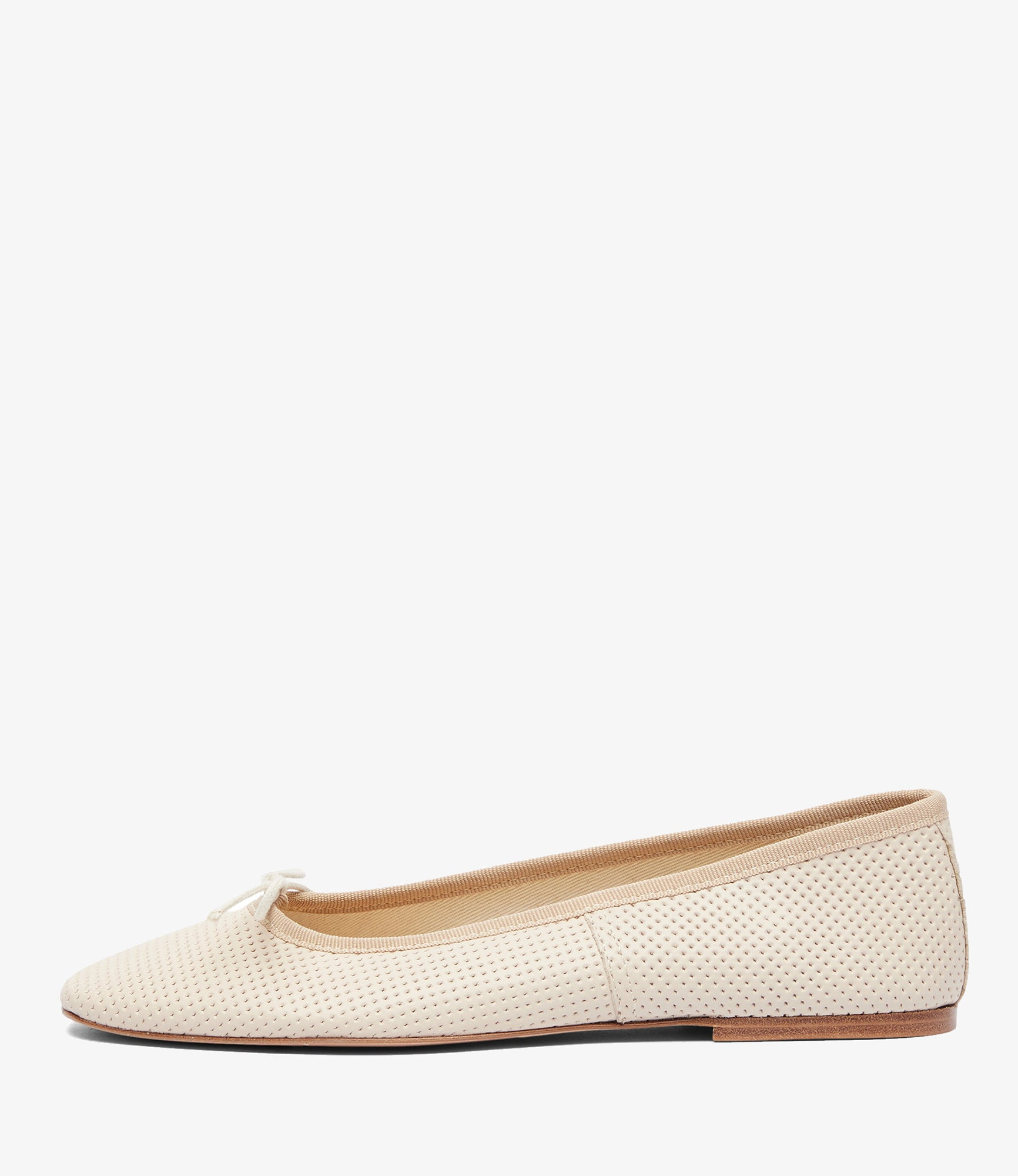 A.P.C. Women's shoes. - Ballet flats in perforated leather. - Slightly square toe. - Topstitching on side. - Adjustable lace around opening. - Leather sole. Size Advice - Sizes 5 to 11. Composition & Material - 100% Leather. - Spanish material. - Made in Morocco. - Wipe clean with a soft dry cloth.