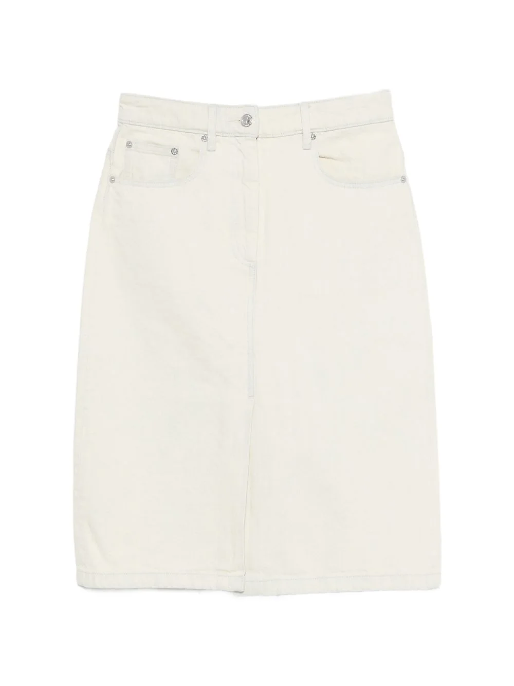 belt-loop midi skirt Highlights - White - Front slit - Five pockets - Belt loop Imported Composition Cotton 100% Washing instructions Machine Wash