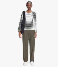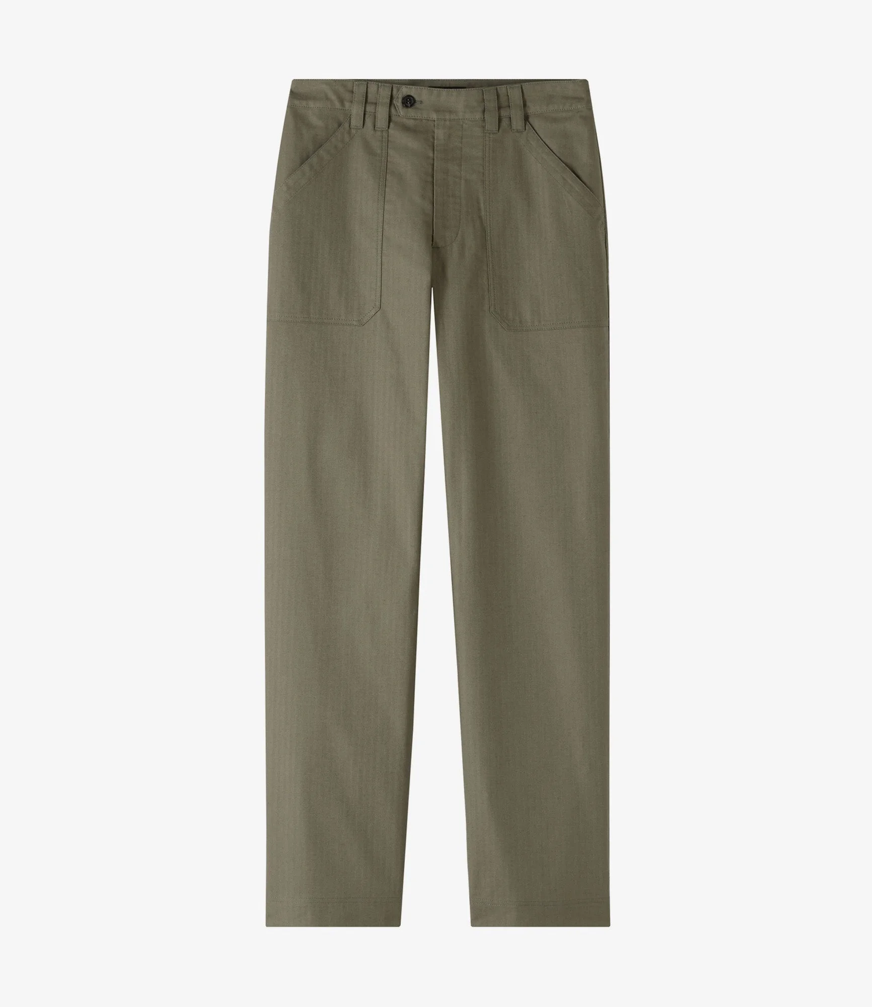 - Workwear-style material. - Straight cut. - Mid-rise. - Off-center buttoned placket. - Hammer pocket on the right leg. - Two large side pockets and one back pocket. - Two double belt loops in front and one in back. Size Advice - Ireen is 5'10 tall and is wearing size 36. Composition & Material - 100% cotton. - Italian material. - Made in Tunisia. - Machine wash cold (86°F) inside-out.