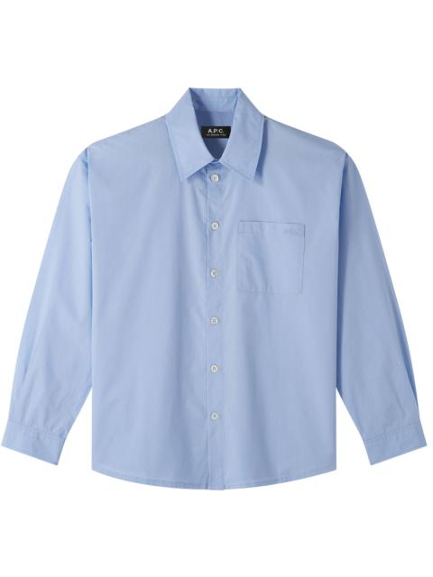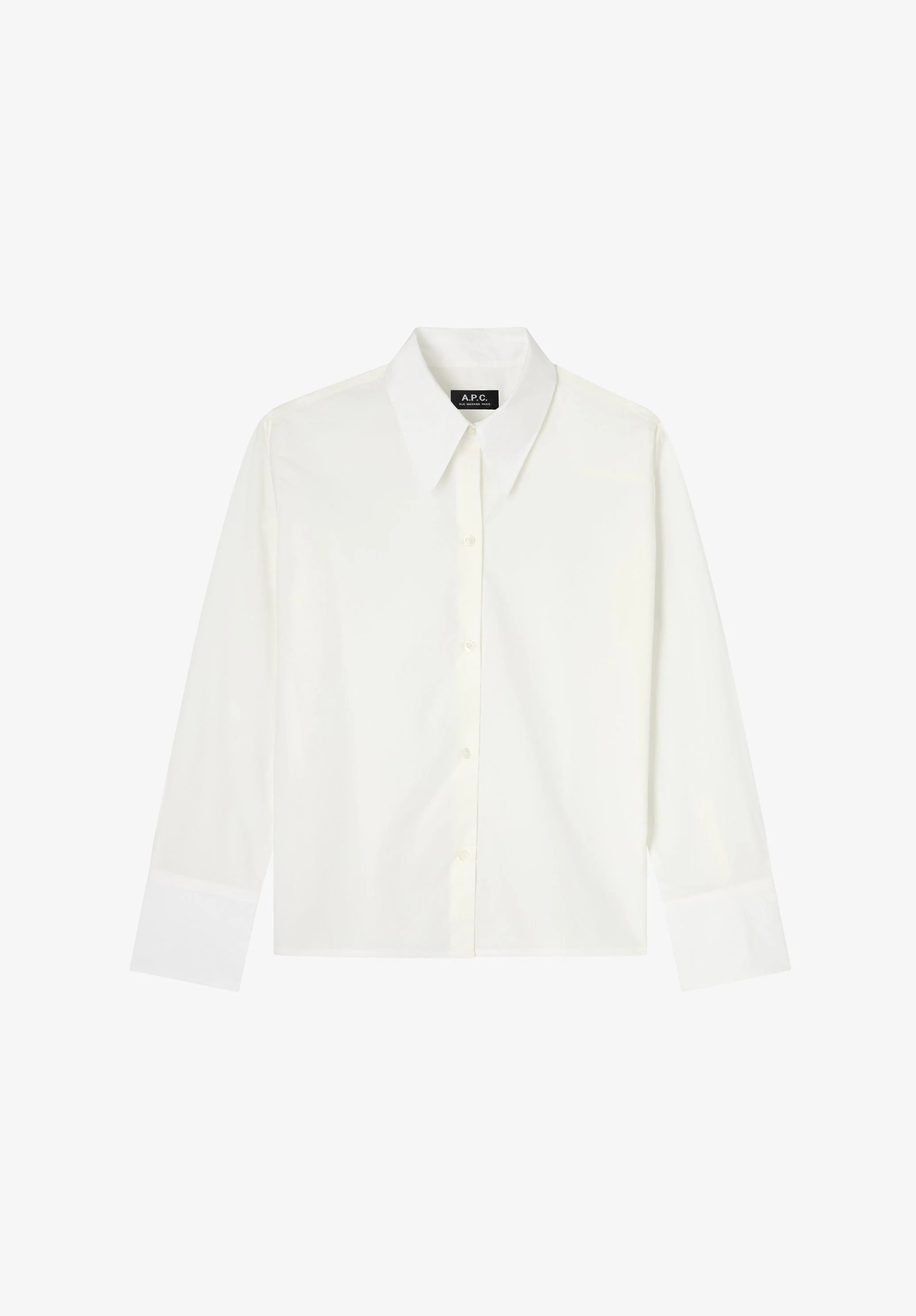 - Organic cotton poplin. - Straight cut. - Large classic collar. - Mother-of-pearl buttons. - 100% organic cotton. Size Advice - Grace is 5'10 tall and is wearing size 36. Composition & Material - 100% cotton. - Spanish material. - Made in Tunisia. - Machine wash cold (86°F) inside-out.