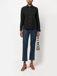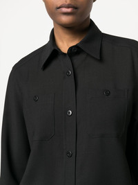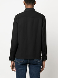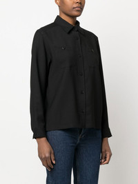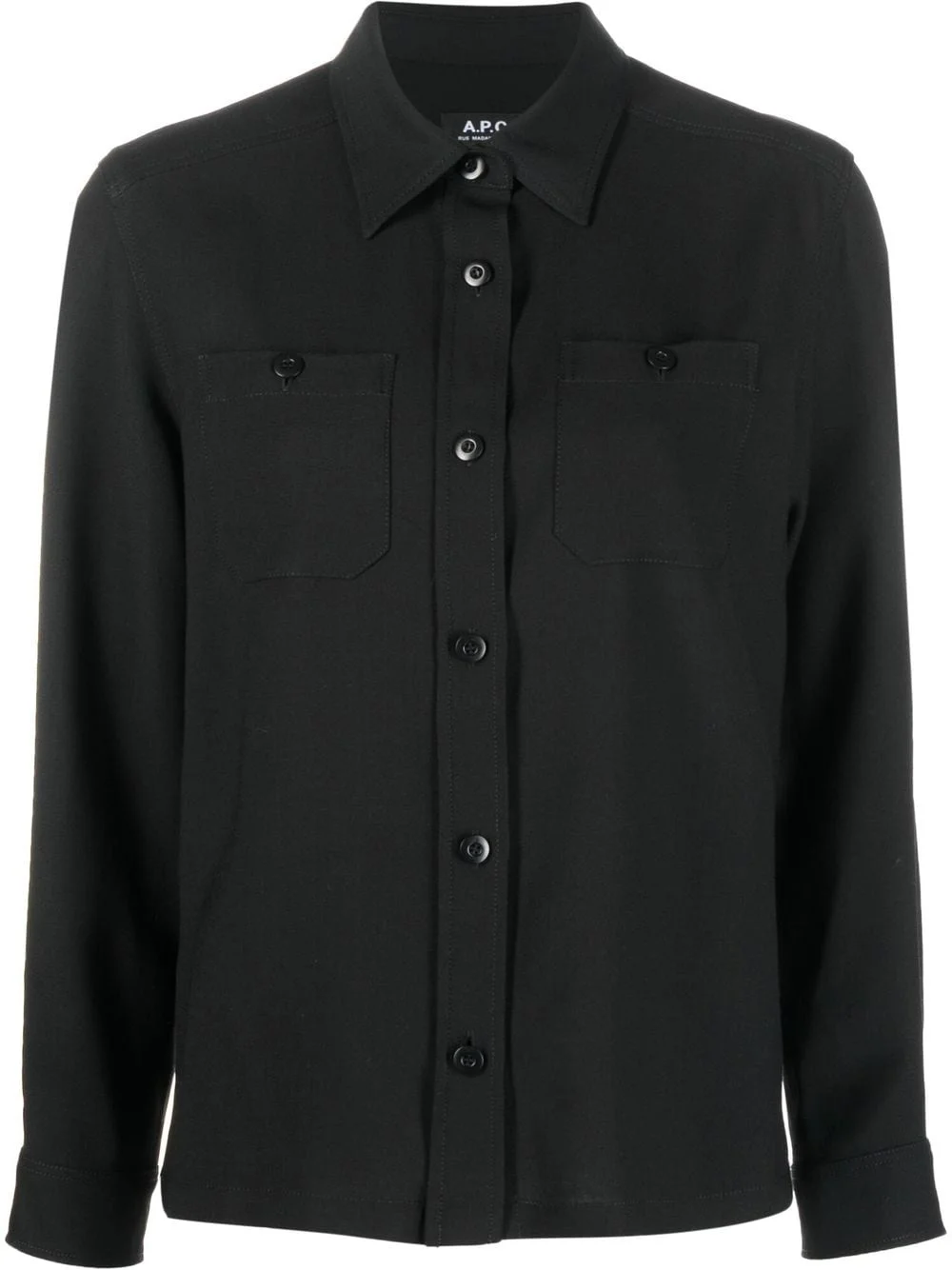 Chloe long-sleeve shirt Made from a soft blend of wool, this black iteration of the Chloe shirt is cut for a relaxed fit that allows it to be worn layered or on its own - a nod to A.P.C.'s penchant for understated yet versatile designs. Imported Composition Viscose 60%, Wool 40% SIZE & FIT Model measurements Height 5 ft 11 in(1.8 m) Bust/Chest 31.49 in(80 cm) Hips 36.61 in(93 cm) Waist 24.4 in(62 cm) FittingInformation This piece fits true to size. We recommend you get your regular size Cut for a loose fit Made with a mid-weight non-stretch fabric Washing instructions Dry Clean Only