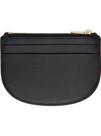 Buffed leather card holder. · Logo stamp at face · Three card slots · Central zip coin compartment · Twill lining · H3.25" x W4.5" Supplier color: Noir Leather. Made in Morocco 252252F037003