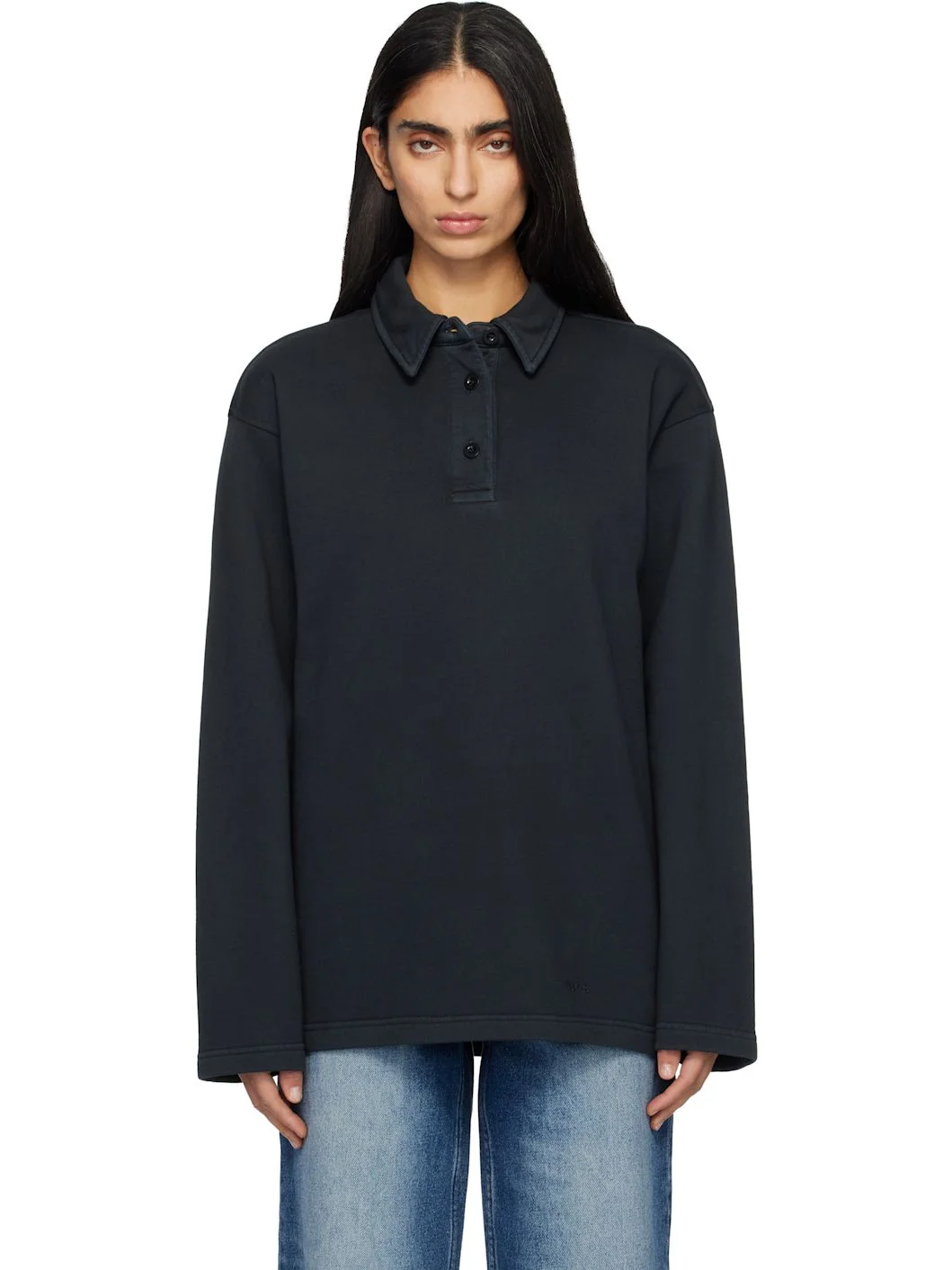 French terry polo. · Spread collar · Three-button placket Supplier color: Black 100% cotton. Made in Turkey 261252F108000