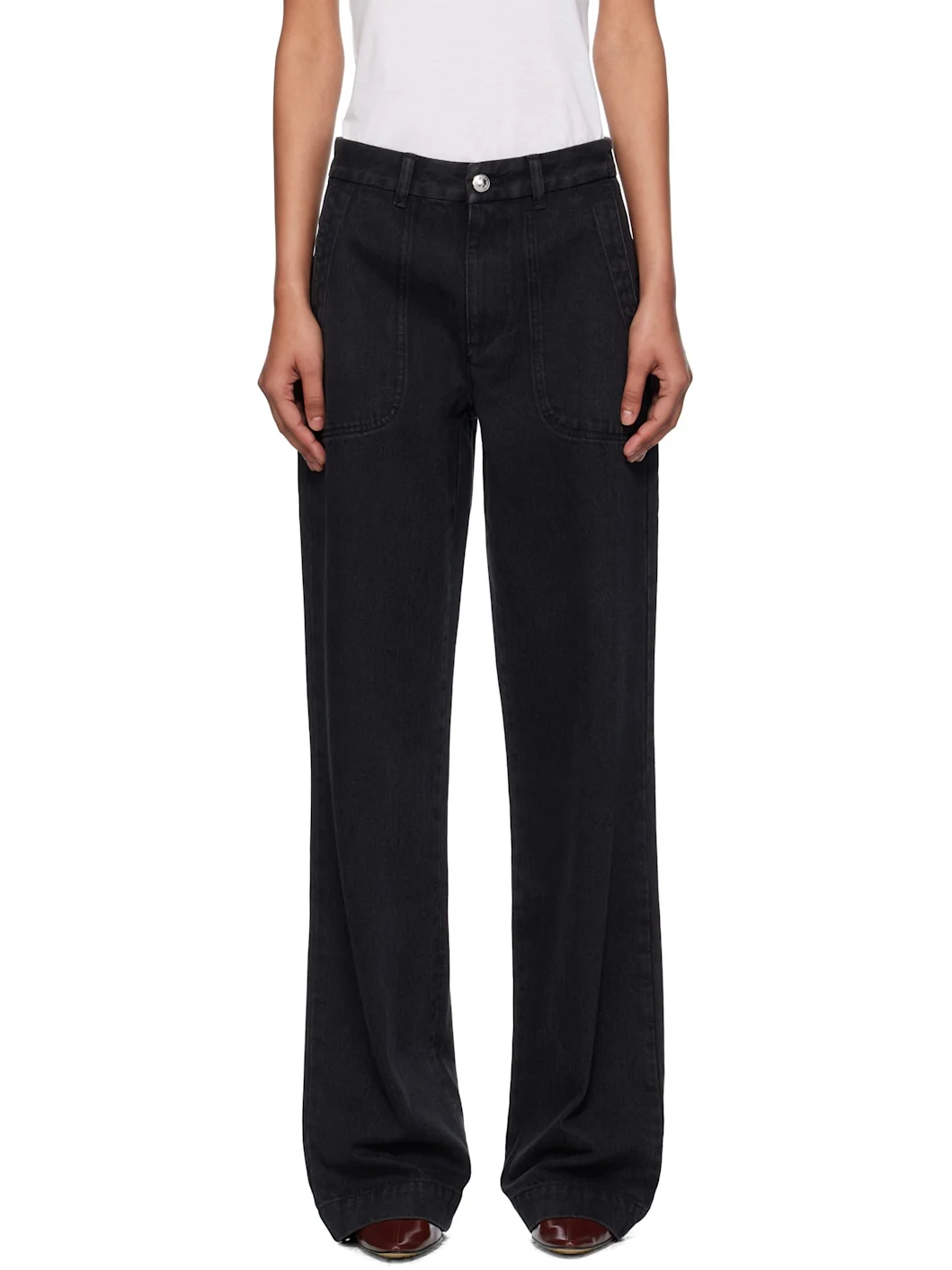 Non-stretch denim jeans. · Fading throughout · Wide straight-leg · High-rise · Belt loops · Four-pocket styling · Zip fly Supplier color: Noir delave 100% cotton. Made in Portugal 252252F069010