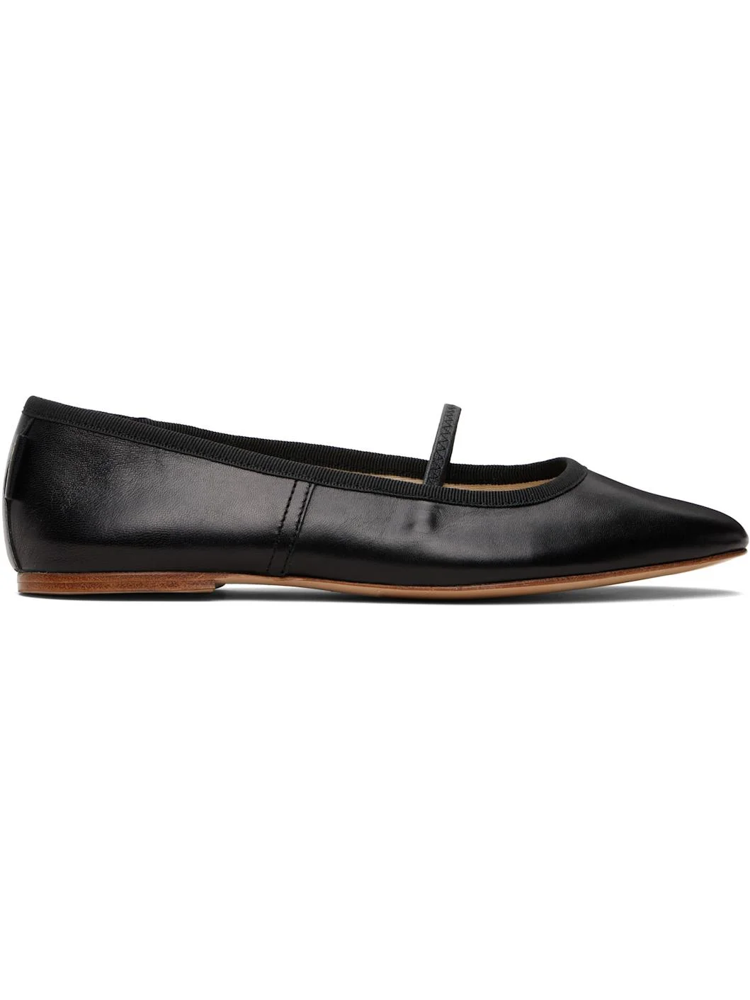 Buffed leather ballerina flats. · Elasticized strap at vamp · Grosgrain trim at collar · Logo flag at heel counter · Twill lining · Polished leather sole Supplier color: Noir Leather. Made in Morocco 261252F118000