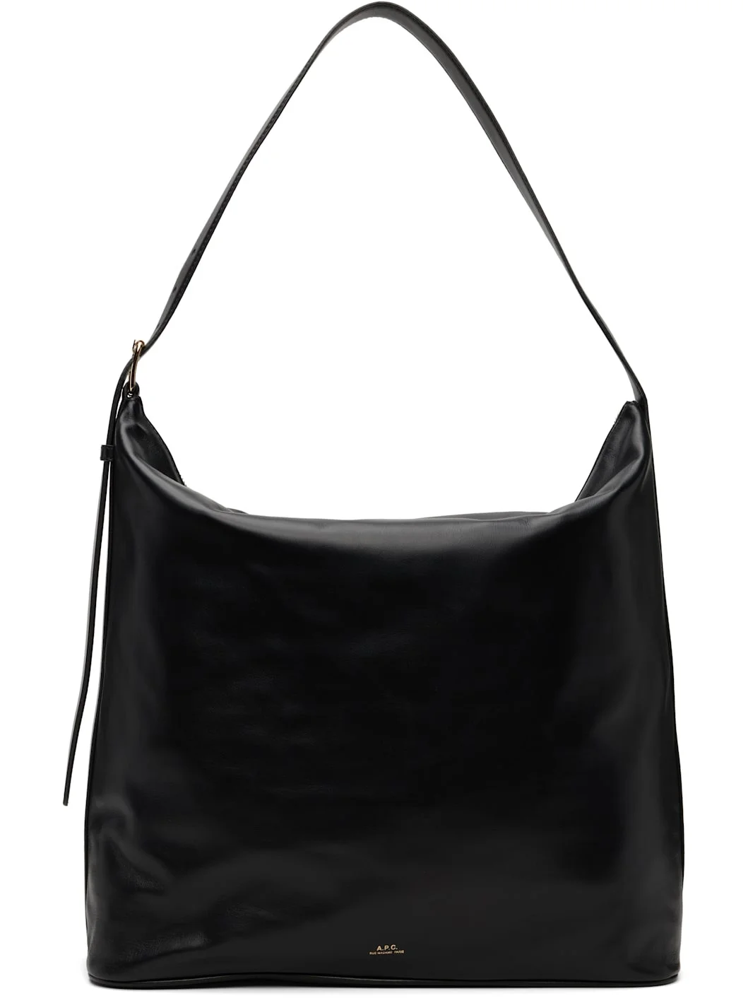 Buffed leather bag. · Adjustable shoulder strap · Gold-tone logo stamp at face · Two-way zip closure · Patch pocket at interior · Cotton canvas lining · Gold-tone hardware · H14" x W16" x D5" Supplier color: Black Body: 100% leather. Lining: 100% cotton. Made in Portugal 252252F049000