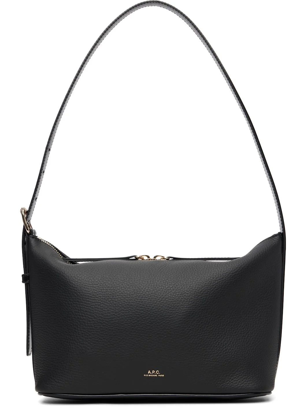 Grained leather shoulder bag. · Adjustable shoulder strap · Logo stamp at face · Two-way zip closure · Patch pocket at interior · Cotton twill lining · H6" x W11" x D4" Supplier color: Black Leather. Made in Portugal 261252F048009