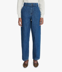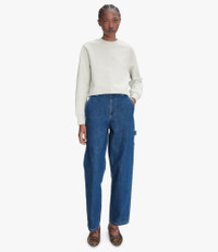 - Soft thick material. - Straight loose cut. - Mid-rise. - Two diagonal pockets in front. - Two back pockets and two on the side of the legs. - One hammer pocket on the left leg. - Zip fly. - 100% organic cotton. Size Advice - Model is 5'9 tall and is wearing size 27. - For women we recommend that you order one size smaller than usual. Composition & Material - 100% organic cotton. - Japanese material. - Made in Vietnam. - Do not dry clean. - Machine wash cold (86°F) inside-out. - Gentle spin cycle. - Do not tumble dry. - The jeans may appear shrunken after washing but they return to their original shape when worn.