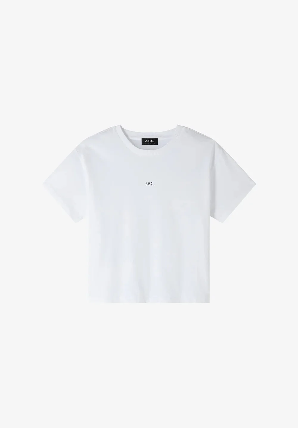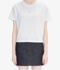 - Cropped and boxy cut with a loose fit. - Crew neck. - White micro A.P.C. logo over the chest. - 100% organic cotton. Size Advice - Model is 5'10 wearing size S. Composition & Material - 100% cotton. - Portuguese material. - Made in Portugal. - Machine wash cold (86°F) inside-out.